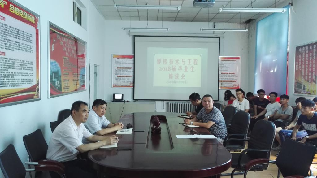 6月22日下午,焊接技术与工程专业在学院三楼会议室召开2018届毕业生座谈会,学院党委书记马波、院长王振廷、学工办主任邬丽群、焊接技术与工程专业教研室主任王永东以及部分专业教师和2018届毕业生参加了座谈会,座谈会由王永东主持。
