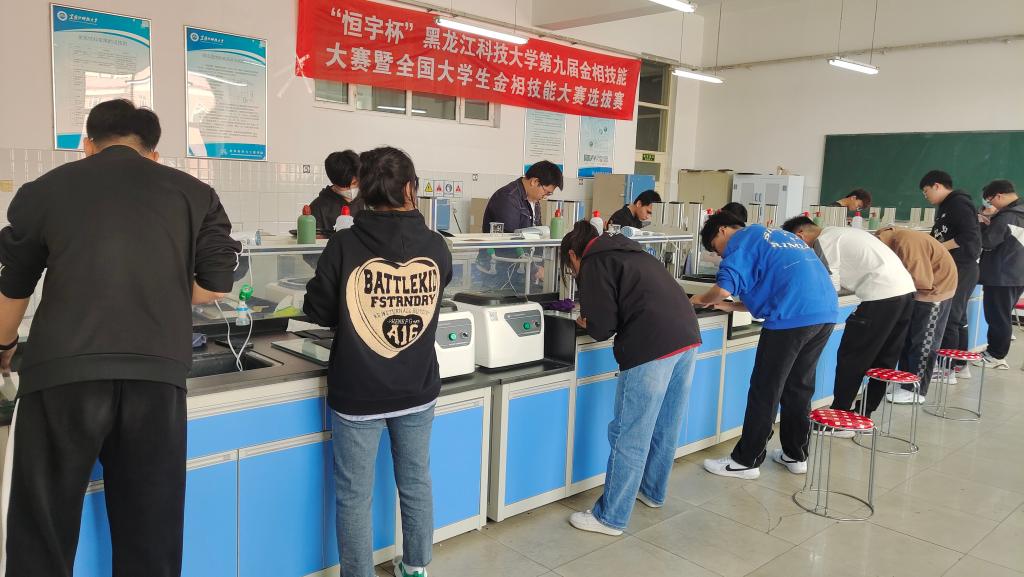 金相技能大赛是一项大学生专业技能比赛,2019年全国大学生金相技能大赛正式纳入全国普通高校学科竞赛排行榜,目前该项比赛已成为材料类专业规格最高、制度最健全、覆盖面最广、影响力最大的赛事之一。全国大学生金相技能大赛采用以赛代训的形式,“以赛促教、以赛促改、以赛促学”,旨在通过学科竞赛促进课程建设、提升学生理论联系实际的能力,不断提高材料学科人才培养质量。4月9日至10日,由beat365中文版官网入口主办的“恒宇杯”黑龙江科技大学第九届金相技能大赛暨全国大学生金相技能大赛选拔赛在beat365中文版官网入口热处理实验室和数码金相实验室举办。