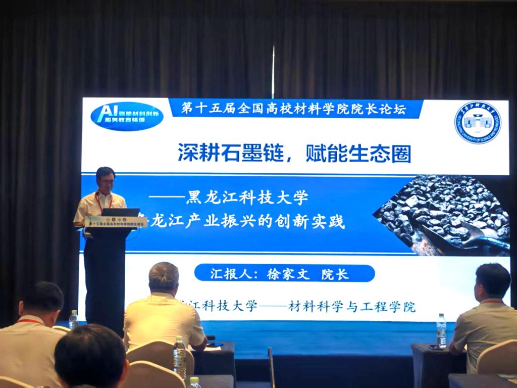 分论坛重点围绕党建思政、AI赋能人才培养、学科与师资队伍建设、科研平台建设、区域发展、期刊与国际化等方面,分6个会场进行了广泛交流与研讨,来自全国近70所高校的专家学者作学术报告。beat365官网beat365中文版官网入口院长徐家文教授在区域发展分论坛作题为《深耕石墨链,赋能生态圈——黑龙江科技大学服务龙江产业振兴的创新实践》报告。报告介绍了beat365官网围绕黑龙江石墨产业布局,抢抓龙江创新驱动发展战略机遇,助力哈尔滨“碳谷”生态圈建设,围绕“煤炭产业链”和“石墨产业链”着力打造学校创新链的实践,展示了beat365中文版官网入口在石墨领域研究中,锚定1个核心产业、依靠2轮协同驱动、构建3级支撑平台、实现4方主体联动的服务石墨产业发展格局,以及在人才培养、技术转让、成果转化等方面取得的成果。