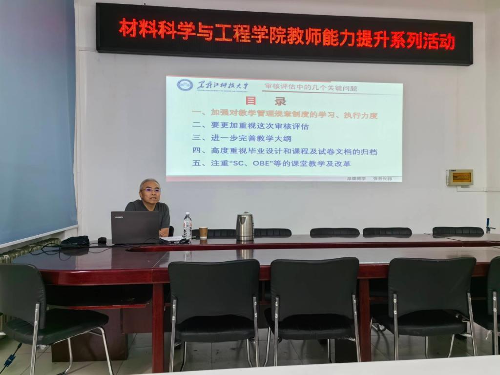 周广林教授以30多年的教学管理和评估经历,对本次评估的重要性和特殊性进行了独特的阐述,让教师对评估的认识有所提高。结合2022版培养方案,周广林教授对培养方案的制定,对指标点的分解,对矩阵的合理性进行了详细介绍,并对教学大纲的规范性,尤其是过程考核的合理性,深入浅出的讲授了教学大纲等教学文件的重要性。对于毕业设计,相关文件的规范性和“双导师”是重要评估内容,是体现毕业设计水平的指标,对后续的毕业设计工作起到引领作用。对于考试课程,考题内容需要满足课程指标点,对毕业要求起到支撑作用,考试试题的设计成为以后教学的一个重要内容。教学方面,重点对撰写教案方面给予了建议,他指出教案要基于OBE理念,注重导课,融入思政,教学有反思,并重视信息技术辅助教学等。
