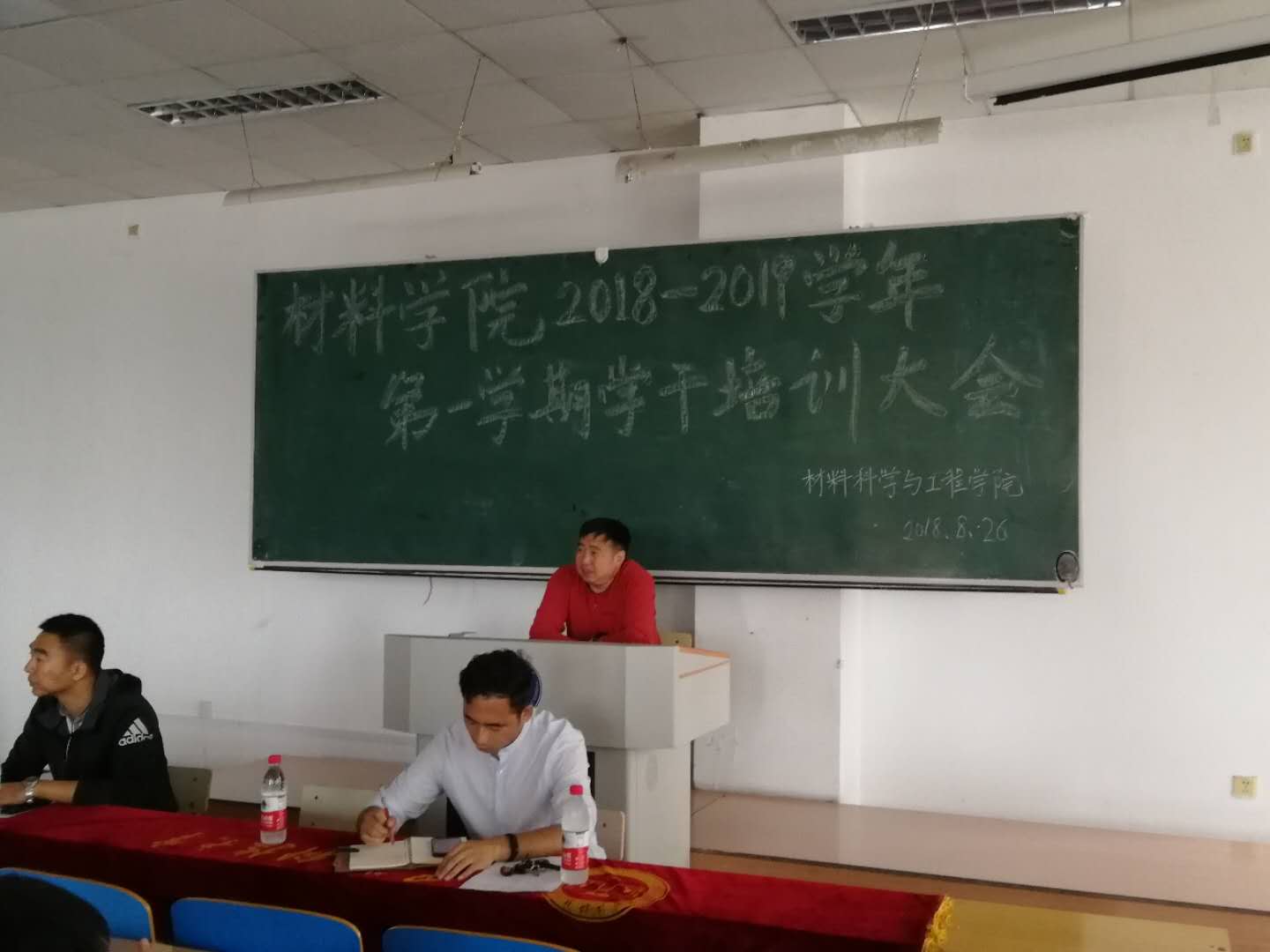 8月26日上午,beat365中文版官网入口在主楼EN0301召开了2018-2019学年第一学期学干培训大会。学院党总支书记马波、学工办主任邬丽群参加会议,会议由辅导员王磊主持。