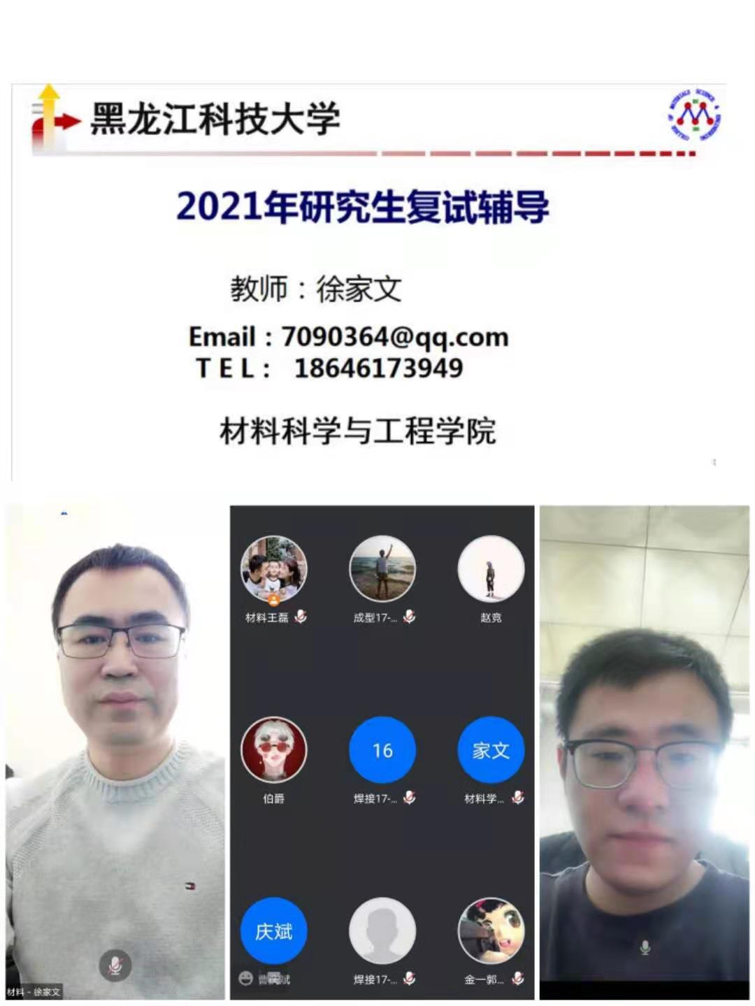 副院长徐家文结合疫情防控常态化下研究生复试的整体原则、面试方式,从材料准备、面试环节、专业知识和调剂技巧四个方面给同学们进行了专业性的辅导和建议,鼓励学生调整好心态、积极准备,广泛收集调剂信息,主动联系学校和导师,密切关注意向导师博士及近三年发表的论文。
