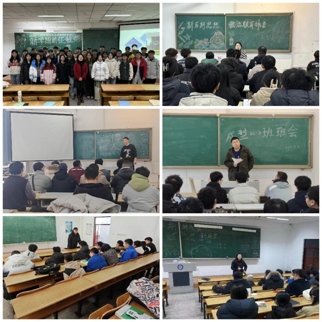 学院以“热辣滚烫新学期 凝心聚力谱新篇”为主题结合各年级学生发展需求和各阶段重点任务举行新学期年级大会,充分发挥思想政治辅导员的思想引领、学业引导、实践引路、生涯引航育人作用,各年级辅导员围绕“向下扎根、向上生长、向内涵养、向外结果”,持续推进爱国主义教育、生命健康教育、学业学风建设、职业生涯教育、考研就业引导、防范电信诈骗等方面,帮助引导学生分层次、系统性、精准化制定新学期成长目标和学习计划;学院组织各班班主任召开班会,制定《2023-2024学年第一学期期末成绩分析报告》,就本学期重点工作提出要求,以班级为单位,全员化、全覆盖组织学生开展学习《黑龙江科技大学学生管理规定》、《黑龙江科技大学本科生奖助学金评审管理办法》、《黑龙江科技大学本科学生先进个人和先进集体评选办法》等制度;团委对寒假社会实践工作进行进一步整理汇总,挑选优秀团队3组,社会实践优秀个人8人,优秀调研报告3篇。完成社会实践重点团队汇编一项,2023-2024寒假社会实践总结1篇。